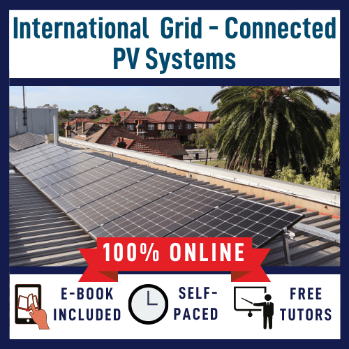 The course is based on and includes our eBook: International Grid-Connected PV Systems: Design and Installation First Edition. Hard copy books are available upon request.